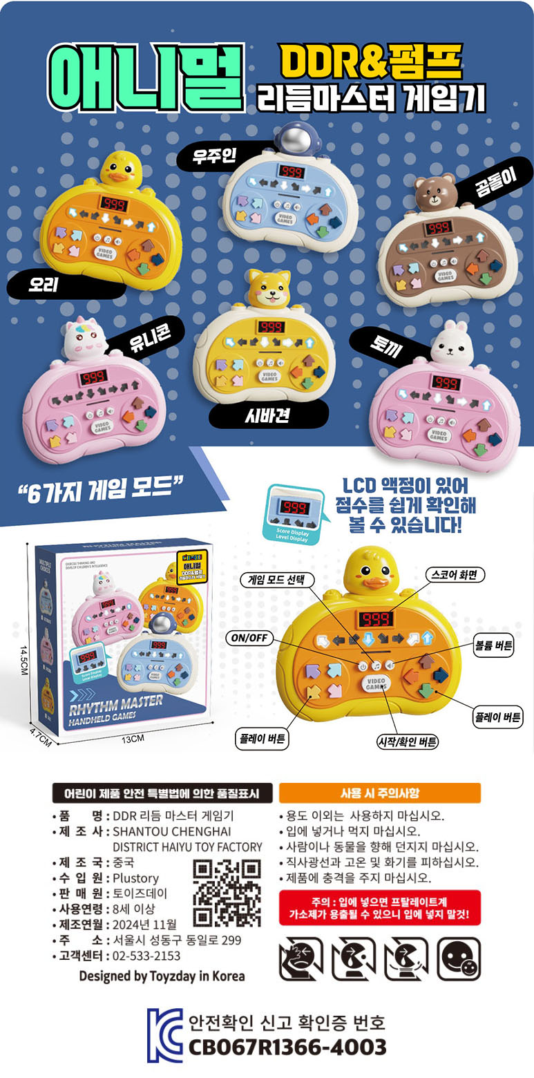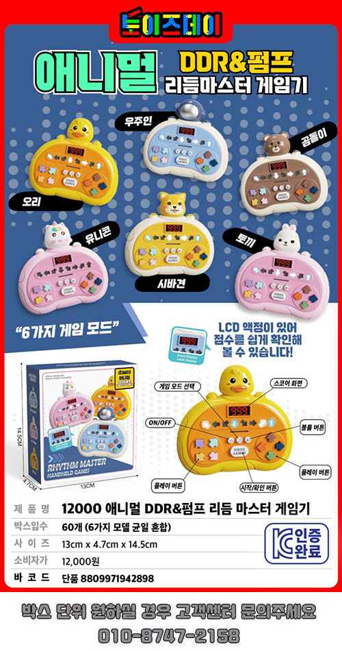 | 품명/모델명 | 품명:완구 / 모델명: 애니멀 DDR&펌프 리듬 마스터 게임기 | ||