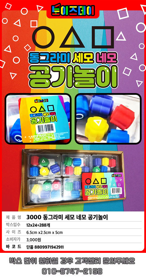 | 품명/모델명 | 품명:완구 / 모델명: 동그라미 세모 네모 공기놀이 | ||