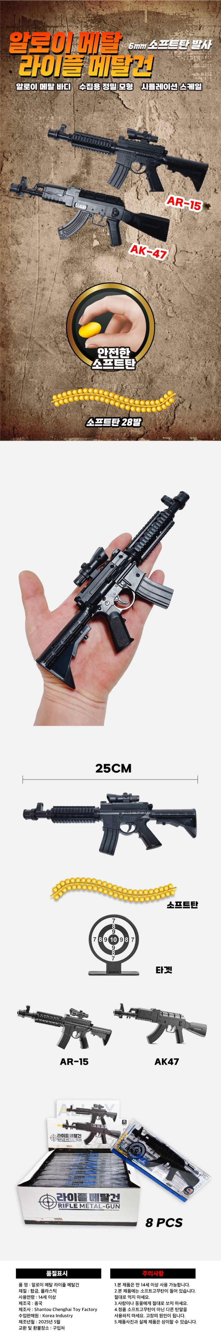 | 품명/모델명 | 품명:완구 / 모델명: 알로이 메탈 라이플 메탈건 | ||