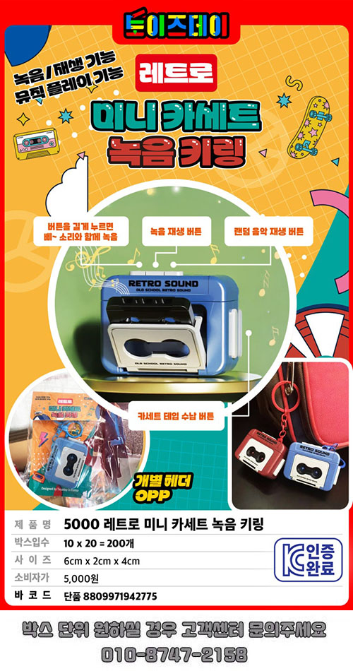| 품명/모델명 | 품명:완구 / 모델명:레트로 미니 카세트 녹음 키링 | ||