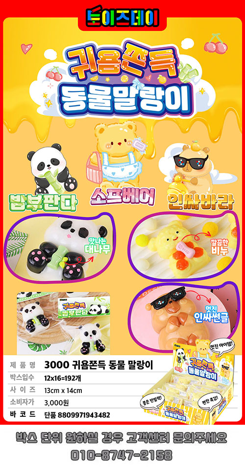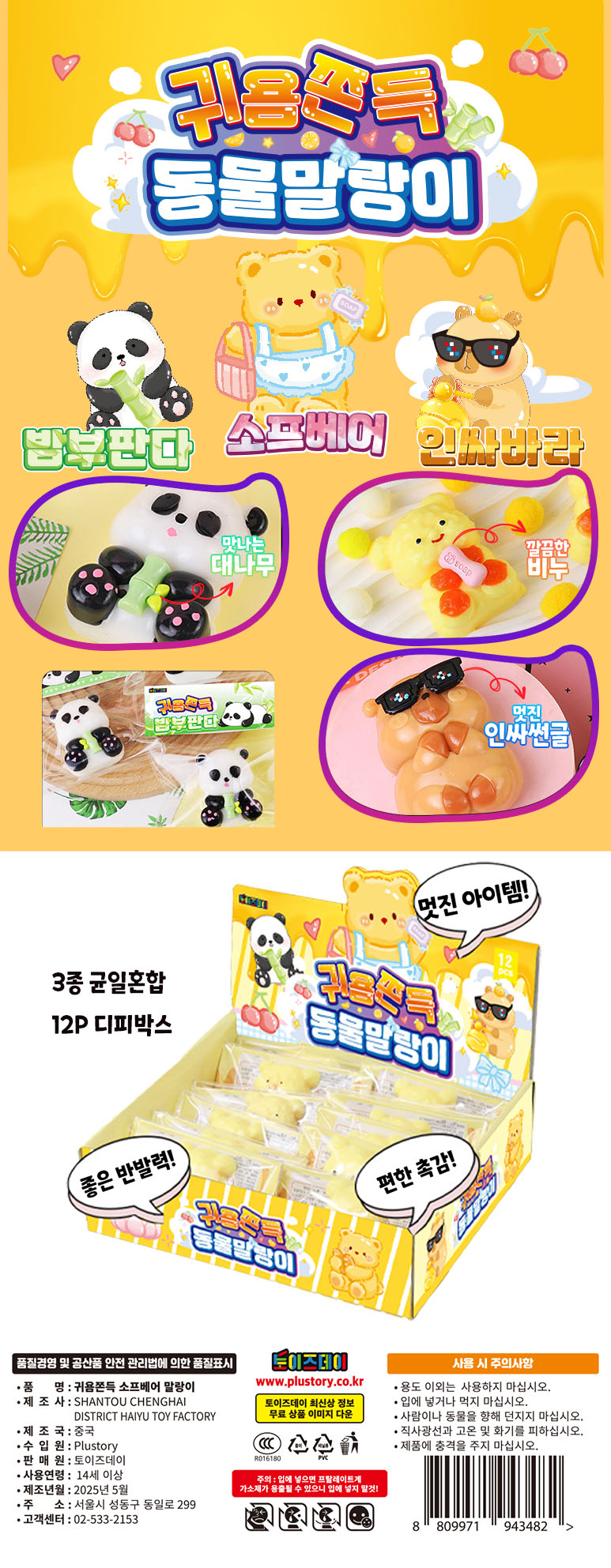 | 품명/모델명 | 품명:완구 / 모델명 : 귀욤쫀득 동물 말랑이 | ||