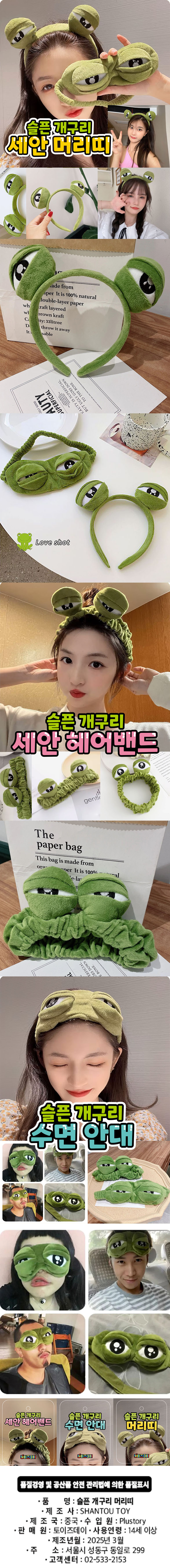 | 품명/모델명 | 품명:완구 / 모델명: 슬픈 개구리 안대 머리띠 헤어밴드 | ||
